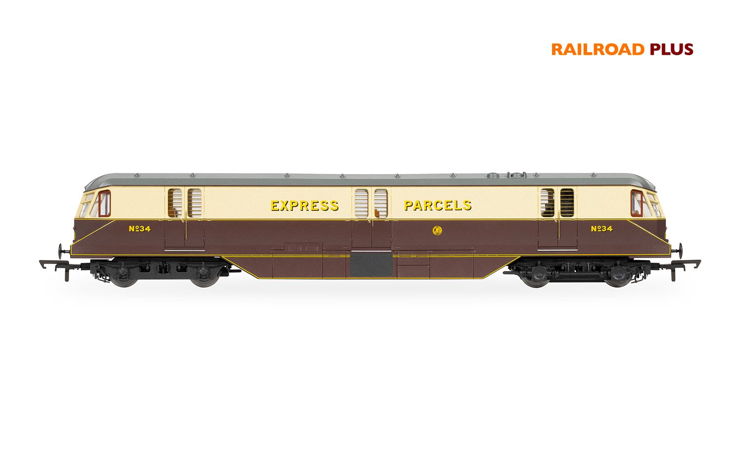 The GWR No. 34 Express Parcels Car model is finished in a GWR cream and brown livery.